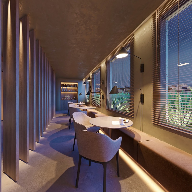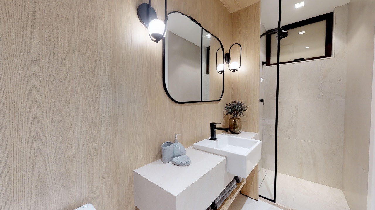 Torneiras com temporizador, sistema dual flush nas instalações; sanitárias e iluminação em LED nas áreas comuns.